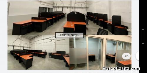 Oficinas con aire acondicionado, sala de reuniones y 2 baños en mezzanine y primer nivel de la bodega.