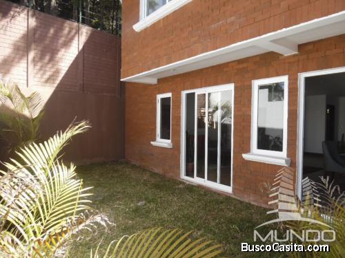 Residencia moderna, y elegante con fachada de ladrillo, en venta en Km 16.5 de Carretera a El Salvador, cercano a CC El Faro. Totalmente nueva, lista para estrenar, cuenta con amplias habitaciones, parqueo techado, área de jardín, habitación de servicio con baño completo, bodega, área para lavandería, habitación principal con walking closet y baño completo, cocina con gabinetes aéreos, sala familiar, balcón y terraza, pisos imitación madera, zócalos y puertas de madera, ventanearía de pvc, top de cuarzo, lámparas ojitos de buey, puertas corredizas para el jardín, condominio de solamente 4 casas.