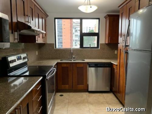 Este lindo y elegante apartamento se entrega equipado con línea blanca en cocina y lavandería, cortinas black out en sala y dormitorios. Su amplitud permite una distribución funcional cómoda e iluminada en todas las áreas. Piso de madera en su totalidad.