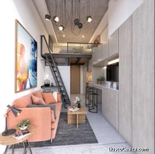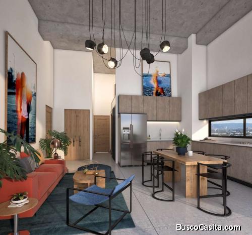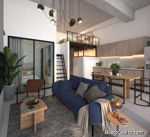 Apartamento en venta de 42.5 Mts2, en Edificio de 10 Niveles ubicado en Zona 4. Con excelente ubicación cercano a Sistema Financiero, Colegios, Centros Comerciales y Parada de Transmetro, el apartamento tipo loft cuenta con 1 Habitación en mezanine, primer nivel con área abierta de Sala-Comedor, Cocina, 1 baño completo.