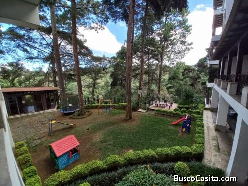 El apartamento es amplio con una hermosa vista al bosque, con iluminación y ventilación natural. En su ingreso cuenta con un área de terraza con vista al área verde y el bosque, sala, baño de visitas, comedor con ambiente amplio, cocina con top de granito, gabinetes y línea blanca en buen estado, amplia área de lavandería, calentador general de agua y dormitorio de servicio con baño completo, adicionalmente cuenta con 1 habitación principal con walk in closet y baño completo con doble lavamanos, 2 habitaciones secundarias cada una con su propio baño y closet y 2 parqueos en sótano.