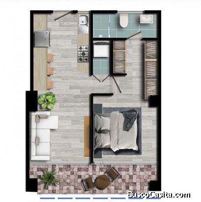 Apartamentos en Venta en la zona 10 Guatemala en planos, este apartamento contara con un área de 48 m2 de construcción + 11.25 m2 de un parqueo + una habitación con walk in closet + área de lavandería + un baño completo + sala + comedor + cocina-pantry, el Balcón puede ser opcional.